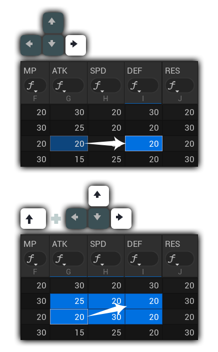 Emulates the controls and feel of common spreadsheet applications, including full keyboard support.