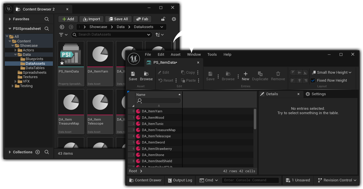 Changes to asset properties are instantly updated in the Spreadsheet, and vice versa. This is also true for changes to the source folders, like creating, deleting, or moving assets.